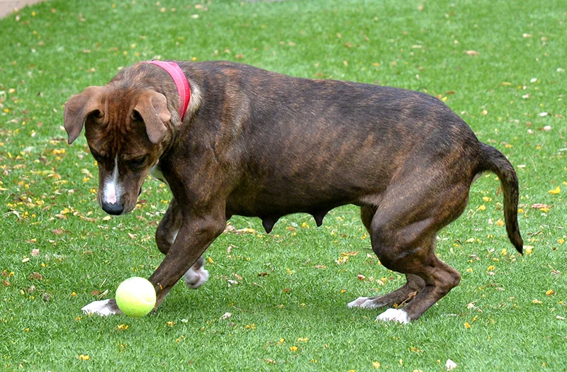 After her puppies were strong enough on their own, Laila began her search for her new home, but she has been waiting for 3 months already!She is a fantastic dog with a ton of potential; agile, energetic, and FUN! She is mostly house-trained, does well with other dogs, and loves tug of war and fetch. She is a pro at self-entertaining and will play with a ball solo. After being a maternal powerhouse and raising 8 of the most amazing puppies, Laila has earned a life of comfort and love, with lots of toys and snuggles.